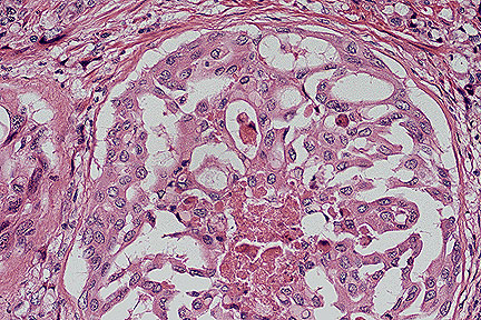 in a canine prostatic adenocarcinoma. (HE, 200X, 107K)