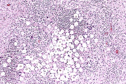of detectable lymphoid elements. (HE, 100X, 86K)