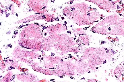 of myofibers in a llama which had ingested oleader. (HE, 400X,