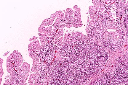 Contributor's Diagnosis and Comments: 1. Moderate acute to subacute protozoan parasitic cloacal bursitis (Cryptosporidium sp.) 2. Mild lymphoid depletion - bursa of Fabricius. 3. Mild acute lymphoid follicular necrosis - bursa of Fabricius.