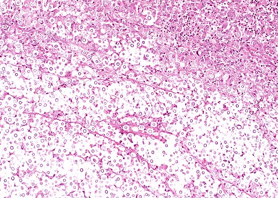 Contributor's Diagnosis and Comments: Brain stem: The sections of brain stem and spinal cord display cytoplasmic neuronal vacuolation.