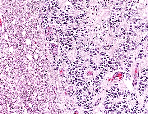 Ependymomas are rare neoplasms of neuroectodermal origin that develop from the ependymal lining of the ventricles of the brain and central canal of the spinal cord. They have been reported in rats, cats, dogs, non-human primates, cattle, horses, deer, and fish. Ependymomas are usually slow-growing and frequently cause extensive tissue damage by compressing the adjacent neuropil. Anaplastic varieties can infiltrate the brain or spinal cord and metastasize via the cerebrospinal fluid. Obstruction of the fourth ventricle can result in hydrocephalus.