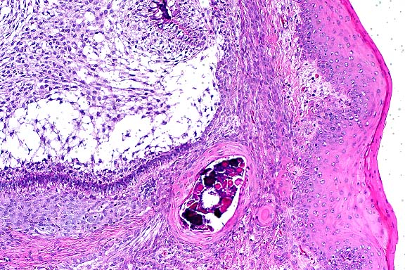 tumor in this dog is fairly well-demarcated. The neoplastic neuroglial