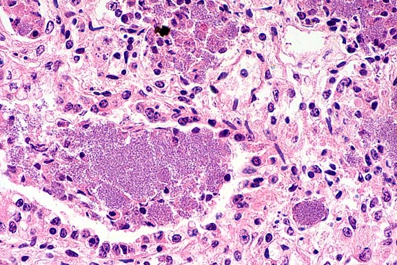 consistent with septicemia. Many capillaries contained hyaline