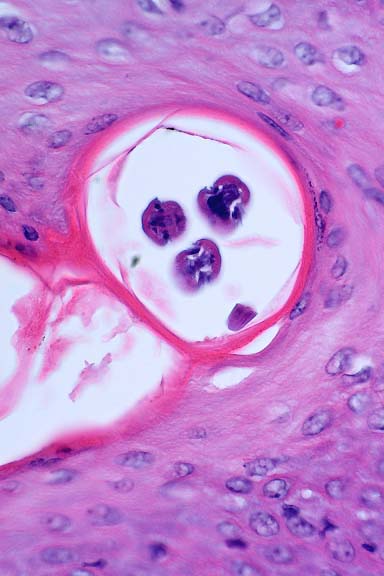 surrounded by keratin scale.