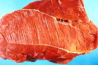 hind leg muscle of one piglet had a well-demarcated, 3 to 4 centimeter,