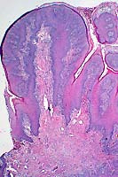 polypoid character of the epidermis in affected areas. The 40x