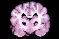 - 1. Thalamus: Cavitation and necrosis, focally extensive,