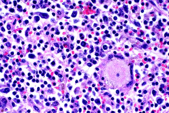 of lymphocytes, macrophages, multinucleate giant cells and eosinophils