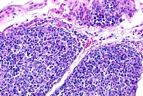 the interstitium there are small to conspicuous perivascular