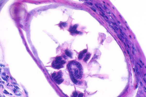 Nematodes have polymyarian-coelomyarian musculature and in this case, has larvae within the uterus.