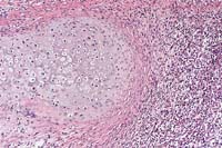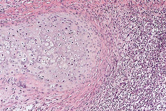 pyogranulomatous with cartilaginous proliferation and osseous