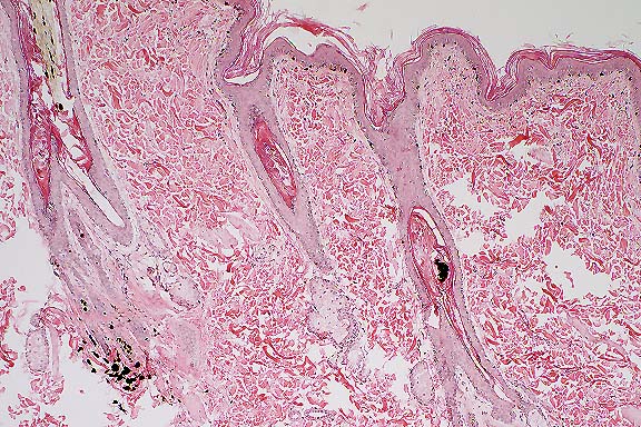 Haired skin: Diffuse superficial and follicular orthokeratotic
