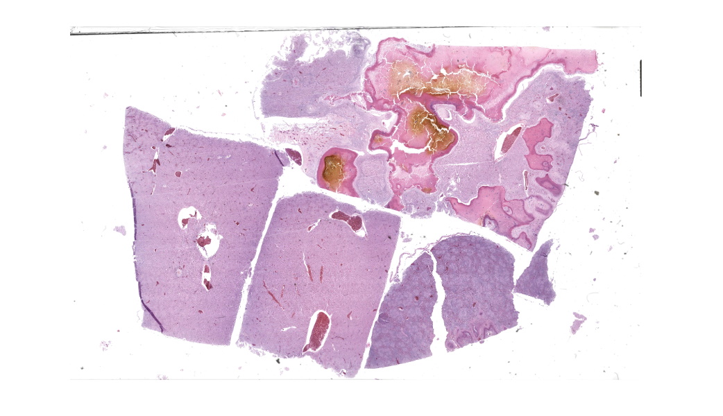 - Liver: Extramedullary hematopoiesis, chronic, periportal, moderate.