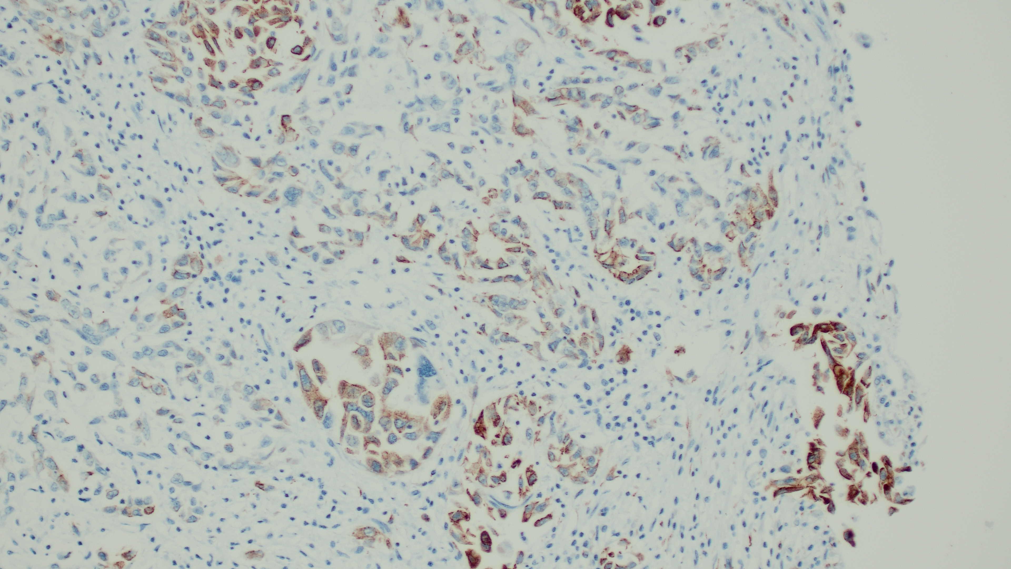 This third case was challenging due to the epithelioid nature of this mesothelioma. Most conference participants were readily able to reach a diagnosis of “carcinoma” or “adenocarcinoma” and many listed epithelioid mesothelioma as a differential. Tissue identification was challenging and only the most experienced participants felt confident calling it omentum based off the HE secttion. The features described by these participants that clued them in to “omentum” included a nodular “string of pearls” subgross appearance, the composition of a highly vascular fibroadipose tissue, and the wherewithal to remember that the omentum exists in the first place, which can be challenging in and of itself some days. The contributor provided a succinct, eloquent write-up on mesotheliomas and their classifications, which were covered during the conference discussion.